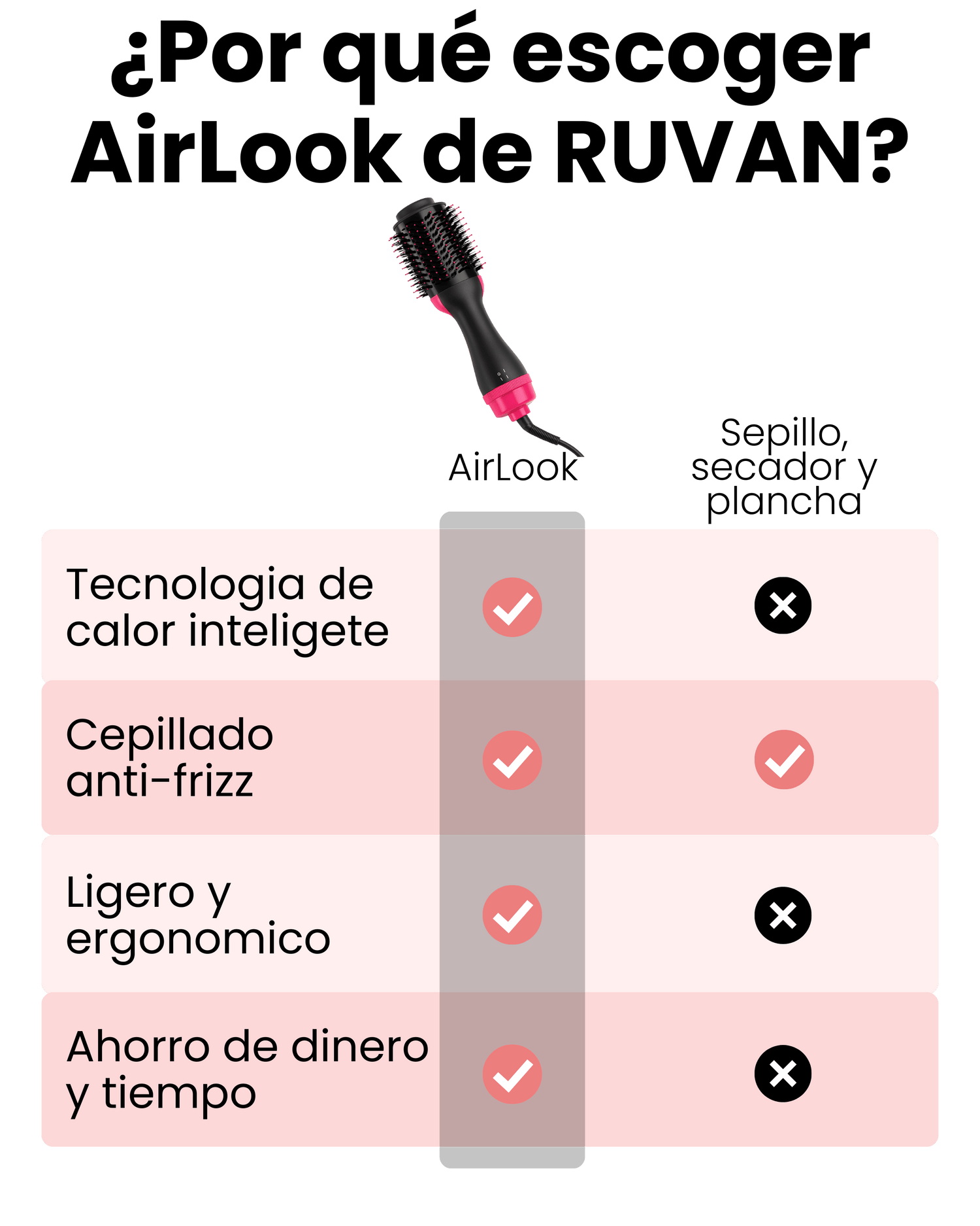 ¿Por qué elegir AirLook sobre una plancha o secador?