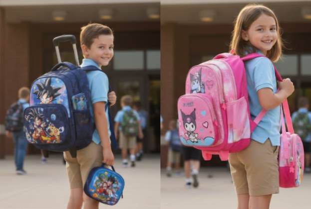Sí, cuenta con un sistema de ruedas reforzado y una estructura de carro de alta durabilidad. Está diseñada para soportar el peso de los útiles y el "trote" diario en el colegio, evitando que el niño tenga que cargar peso en su espalda.